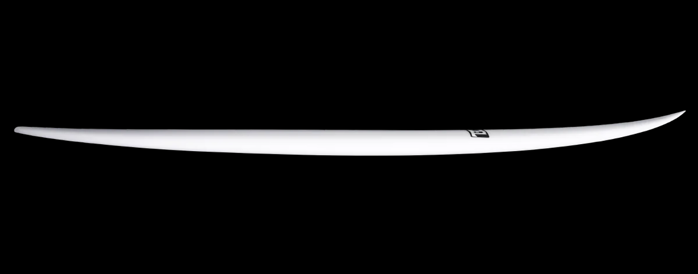 このボードのロッカーとボトムの曲線は、他のボードカテゴリーとはっきり区別するものです。 これまでで最もフラットな ハイパフォーマンスボードであり、そのロッカーは、テイクオフで立ち上がった瞬間から、フラットなセクションや非常に弱い小さな波でも、びっくりするほど簡単にハイスピードに変換されます。 しかし、フラットなロッカーはルース性を損なう傾向が有りそれを補うために、フロント 2/3 でシングル コンケーブ~ダブル コンケーブ (JJF のお気に入りのボトム コンター) を実行し、それを大幅なダブル コンケーブ~ディープ V コンボにブレンドしました。 それにより水流はFINエリアを通り、テールから高速でスムーズに抜けていきます。 このボトムデザインによりフラットなボードがレール to レールでのイージーターンを助け、テールの Veeが機能して、タイトでポケットの多い波でも、バーティカル サーフィンやショート アーク カービングが容易になります。